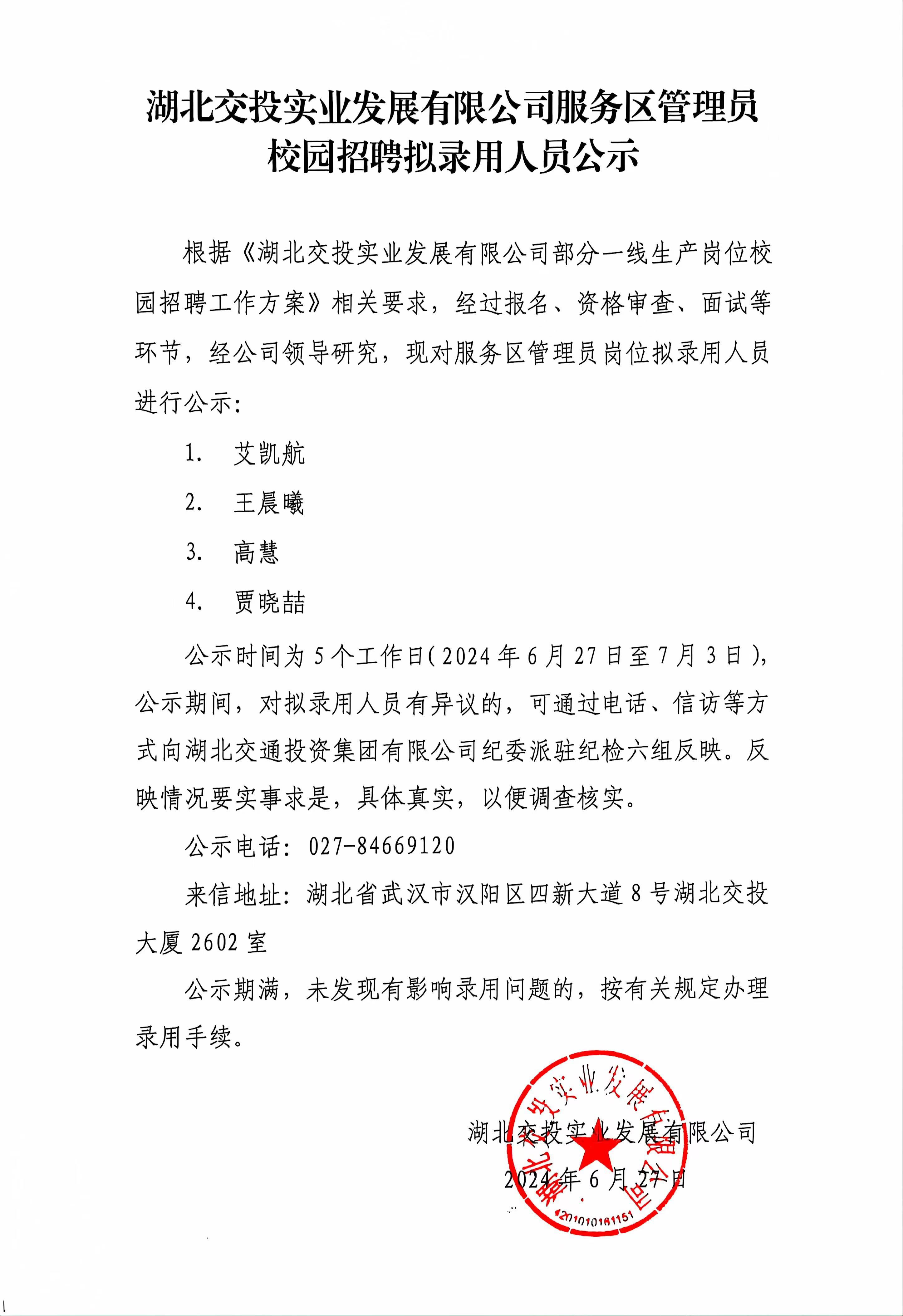 湖北交投实业发展有限公司服务区管理员校������ �������Ƴ����������� �������Ƴ������������ �������Ƴ������������ �������Ƴ����������� �������Ƴ�������园����� �������Ƴ������������ �������Ƴ������������ �������Ƴ������������ �������Ƴ�������招聘拟录用人员公示